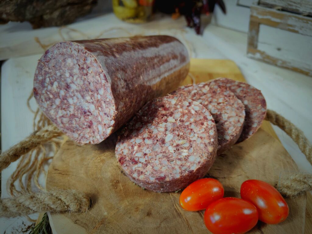 Kaszanka to tradycyjny Polski wyrób, samym przekrojem przyciąga, odpowiednio doprawiona przez naszego Mistrza Masarstwa. Kaszanka to produkt na liście obowiązkowej. Dzięki obecności kaszy ( jęczmiennej) kaszanka dostarcza nam wielu substancji bioaktywnych: składników mineralnych (fosfor, miedź, potas), witamin z grupy B czy błonnika pokarmowego. Pieczona, smażona, gotowana lub parzona – sposobów jej podawania jest naprawdę wiele. Produkt ten znajdziecie Państwo w paczkach : „ Stół dla Czworga”.